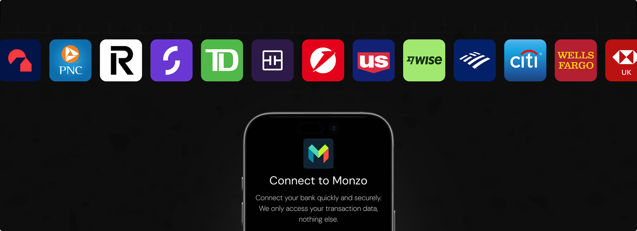 I integrated Plaid, a service that allows apps to connect to thousands of consumer banks across the US, UK, and Europe via API. Plaid is used by well-known products such as Venmo, Robinhood, Chime, Acorns, and Coinbase.