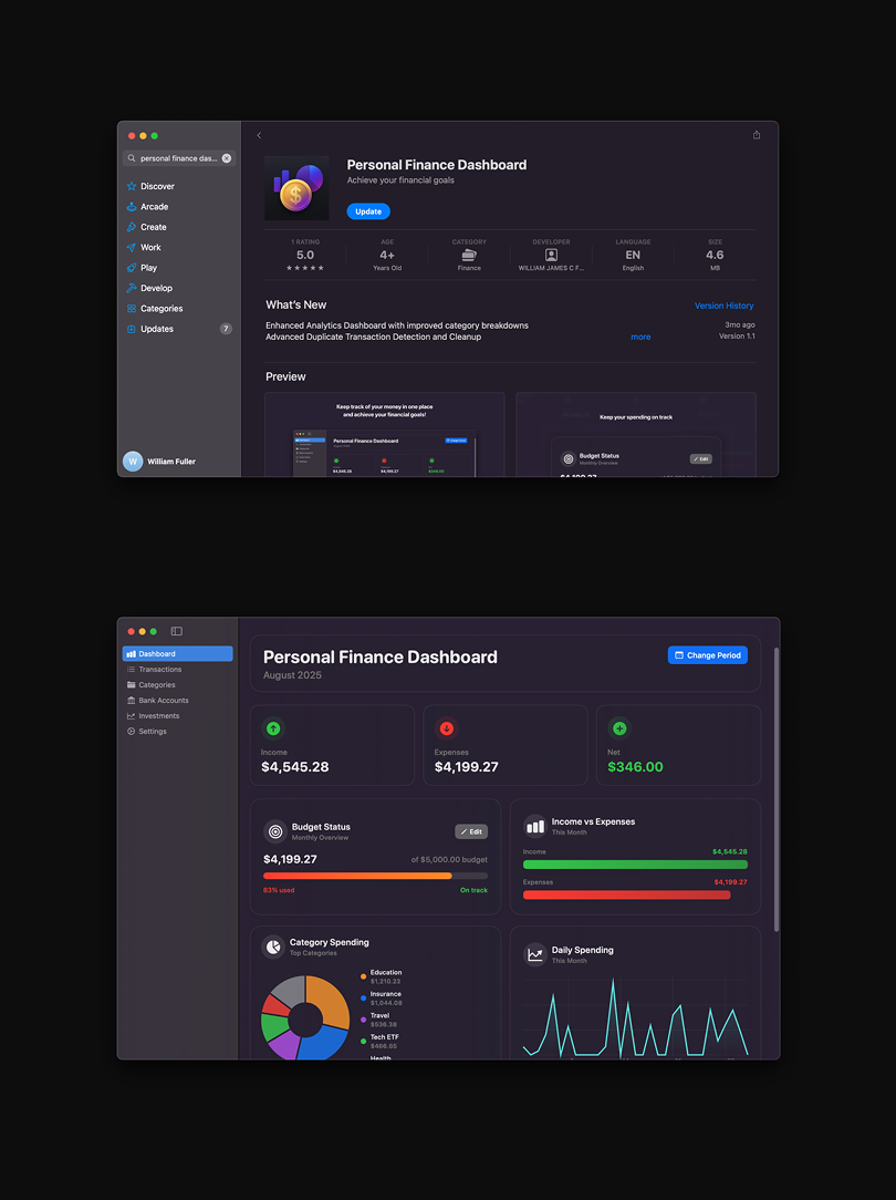 Although I still use my Mac budgeting app, I became frustrated with how manual the process was due to the lack of direct bank connectivity. Since building it, my workflow with Claude Code has improved significantly, and by connecting it to an MCP server and sharing Figma designs, I'm now able to create truly custom UI that goes far beyond generic AI output.